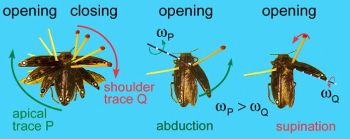 [4] Frantsevich, Leonid, Double rotation of the opening (closing) elytra in beetles (Coleoptera), Journal of Insect Physiology, 58:1 (Jan 2012), 24-34, https://doi.org/10.1016/j.jinsphys.2011.09.010.